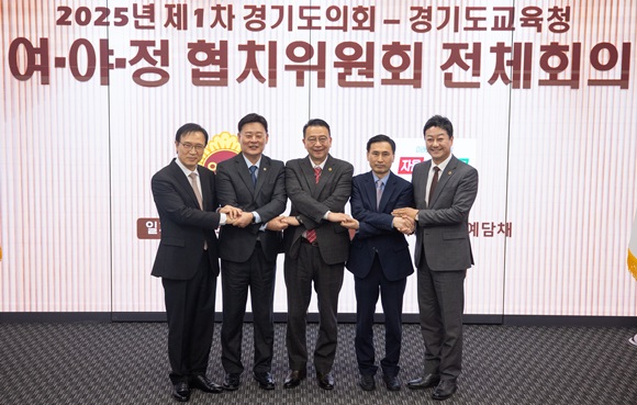 2025³â Á¦1Â÷ °æ±âµµÀÇȸ¿Í °æ±âµµ±³À°Ã» ¿©¾ßÁ¤ ÇùÄ¡À§¿øÈ¸°¡ 5ÀÏ °æ±âµµÀÇȸ ¿¹´ãä¿¡¼­ 2026³Æµµ ÇùÄ¡ ¿¹»ê¿¡ ÇÕÀÇ µÚ ±â³äÃÔ¿µÀ» Çϰí ÀÖ´Ù. ¿ÞÂʺÎÅÍ ÀÓÅÂÈñ °æ±âµµ±³À°°¨, ÃÖÁ¾Çö °æ±âµµÀÇȸ ´õºÒ¾î¹ÎÁÖ´ç ´ëÇ¥ÀÇ¿ø, ¹éÇöÁ¾ °æ±âµµÀÇȸ ±¹¹ÎÀÇÈû ´ëÇ¥ÀÇ¿ø, ±èÁø¼ö °æ±âµµ±³À°Ã» Á¦1ºÎ±³À°°¨, ±èÁø°æ °æ±âµµÀÇȸ ÀÇÀå.(»çÁø= °æ±âµµÀÇȸ Á¦°ø)