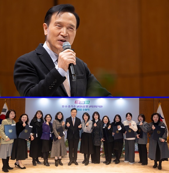 ¸ðµç ½ÅÀÓ ±³(¿ø)Àå°ú ±³À°Àü¹®Á÷¿ø¿¡°Ô ÀÏÀÏÀÌ ÀÓ¸íÀåÀ» ¼ö¿©ÇÏ¸ç °Ý·ÁÀÇ ¸»À» °Ç³Ù ÀÓÅÂÈñ ±³À°°¨Àº ¡°ÀÌ ÀÚ¸®¿¡ °è½Å ºÐµéÀº °æ±âµµ ±³À°ÀÇ °¡Àå Áß½ÉÀ̽ŠºÐµé¡±À̶ó¸ç ¡°Çб³¿Í ±³À°Áö¿øÃ», Á÷¼Ó±â°üÀ¸·Î »õ·Ó°Ô Á÷Ã¥À» ¸Ã¾Æ Ãâ¹ßÇϽô ¸ðµç ºÐ²² Å« ±â´ë¿Í ÇÔ²² ÀÀ¿øÀÇ ¸»¾¸À» µå¸°´Ù¡±°í ¸»Çß´Ù.