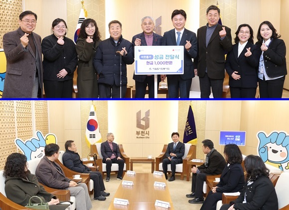 À̰­¼ö ¾î¿ï¸²»çȸºÀ»çȸ Àå¾ÖÀÎȰµ¿Áö¿ø±â°ü ´ëÇ¥¸¦ ºñ·µÇÑ °ü°èÀÚµéÀÌ Áö³­ 1¿ù 29ÀÏ ºÎõ½Ãû ¸¸³²½Ç¿¡¼­ ÀÌ¿ôµ½±â ¼º±Ý 1õ¸¸¿øÀ» Àü´ÞÇϰí Á¶¿ëÀÍ ºÎõ½ÃÀå µî °ü°è°ø¹«¿øµé°ú ±â³äÃÔ¿µÀ» ÇÏ°í ´ëÈ­¸¦ ³ª´©°í ÀÖ´Ù.(»çÁø= ºÎõ½Ã Á¦°ø)