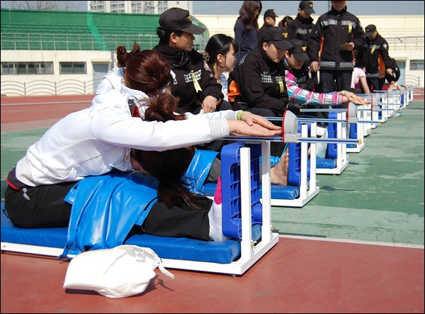 ü·Â½ÃÇèÀº ¾Ç·Â, ¹è±Ù·Â, Á¦ÀÚ¸®¸Ö¸®¶Ù±â, ¾É¾Æ À¸ö ¾ÕÀ¸·Î ±ÁÈ÷±â, À¸ö ÀÏÀ¸Å°±â, ¿Õº¹ ¿À·¡´Þ¸®±â µî ÃÑ 6Á¾¸ñÀ¸·Î °ÉÃÄ ½Ç½ÃÇϸç, ÇհݱâÁØÀº ¸Å Á¾¸ñ 1Á¡ÀÌ»ó, Àü Á¾¸ñ ÃÑÁ¡ÀÇ 4ÇÒ ÀÌ»ó µæÁ¡ÇØ¾ß Çϸç, Àü ´Ü°èÀÇ Ã¼·Â°Ë»ç Á¾¸ñ¿¡ ÇÕ°ÝÇÏÁö ¸øÇÏ¸é ´ÙÀ½ ´Ü°èÀÇ Ã¼·Â°Ë»ç Á¾¸ñ¿¡ ÀÀ½ÃÇÒ ¼ö ¾ø´Â ¹æ½ÄÀ¸·Î ÁøÇàµÈ´Ù.
