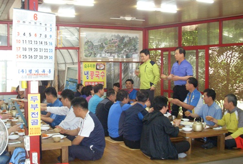 ºÎõ¼Ò»ç°æÂû¼(¼Àå Á¶Ç×Áø)´Â 11ÀÏ ¿ÀÀü ¸ð¹ü¿îÀüÀÚȸ, ³ì»ö¾î¸Ó´Ïȸ µî 35¸íÀ» ÃÊû, ¼ºÁÖ»êÀ» µî¹ÝÇϰí Á¡½É½Ä»ç¸¦ ÇÏ¸é¼ °Ý·ÁÇÏ´Â ÀÚ¸®¸¦ ¸¶·ÃÇß´Ù.   |