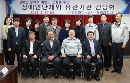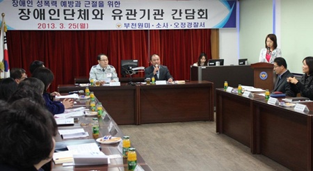 ºÎõ¿ø¹Ì°æÂû¼(¼Àå ÀÌ¿¬ÅÂ)´Â 25ÀÏ °æÂû¡¤ÁöÀÚü¡¤¼ºÆø·Â »ó´ã¼Ò µî À¯°ü±â°ü°ú Àå¾ÖÀÎÇùȸ ´ëÇ¥°¡ Âü¼®ÇÑ °¡¿îµ¥ ¡®Àå¾ÖÀÎ ¼ºÆø·Â ±ÙÀý¡¯À» À§ÇÑ °£´ãȸ¸¦ °®°í ÇùÀÇü¸¦ ±¸¼ºÇß´Ù.  |