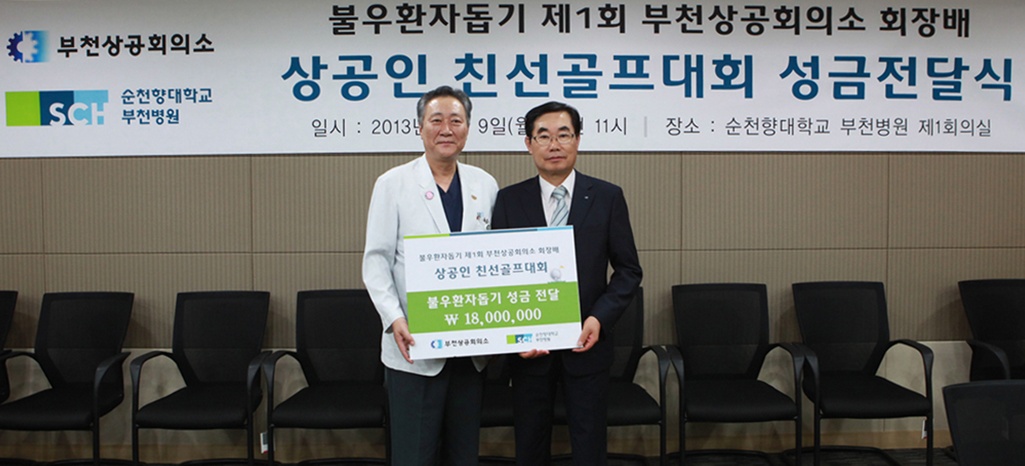 Á¶¼º¸¸ ºÎõ»ó°øÈ¸ÀÇ¼Ò È¸ÀåÀº ¡°À̹ø °ñÇÁ´ëȸ´Â ºÒ¿ìÀÌ¿ôµ½±â¸¦ À§ÇØ ¸¶·ÃµÈ ù ´ëȸ·Î, ¸¶·ÃµÈ ±â±ÝÀÌ °ü³» °ÅÁ¡º´¿øÀÎ ¼øÃµÇâ´ëÇб³ ºÎõº´¿øÀ» ÅëÇØ ¾î·Á¿î ȯ°æ¿¡ óÇÑ ÁßÁõ ȯÀÚµéÀ» À§ÇØ »ç¿ëµÇ°Ô µÅ ¸Å¿ì ±â»Ú°Ô »ý°¢ÇÑ´Ù¡±¸ç ¡°ºÎõ»ó°øÈ¸ÀǼҴ ¾ÕÀ¸·Îµµ ºÎõ½Ã³» °ÅÁÖÇÏ´Â ¾î·Á¿î ÀÌ¿ôµéÀ» À§ÇØ ÀÌ·± ±âȸ¸¦ ÀÚÁÖ ¸¶·ÃÇÒ °èȹ¡±À̶ó°í ¹àÇû´Ù.