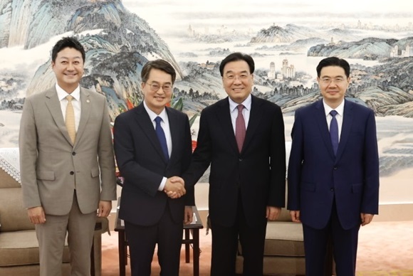 ±èµ¿¿¬ °æ±âµµÁö»ç(¿ÞÂÊ)°¡ 26ÀÏ Áß±¹ Àå¾¥¼º ½Åâ½Ì ´ç¼±â¿Í ¸¸³ª ¾Ç¼ö¸¦ ³ª´©°í ȯ´Ù¹É Çϰí ÀÖ´Ù. ¾ç µµ½Ã´Â ºÐ¾ßº° Çù·ÂÀ» °Çϱâ·Î Çß´Ù.(»çÁø=°æ±âµµ Á¦°ø)