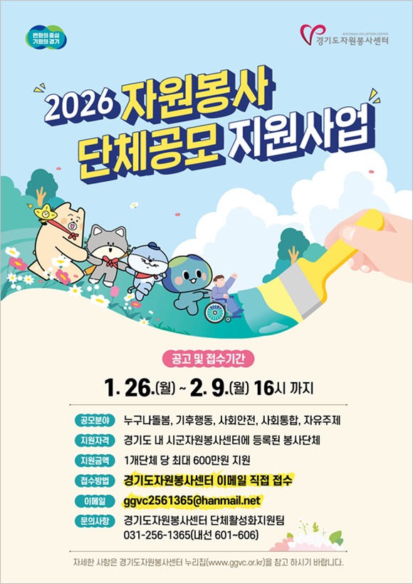 ½Åû Á¢¼ö´Â ¿À´Â 2¿ù 9ÀÏ ¿ÀÈÄ 4½Ã±îÁöÀ̸ç, ÀüÀÚ¿ìÆíÀ» ÅëÇØ ½Åû ¼­·ù¸¦ Á¦ÃâÇÏ¸é µÈ´Ù. °ø¸ð ¼¼ºÎ ³»¿ë°ú ½Åû ¹æ¹ýÀº °æ±âµµÀÚ¿øºÀ»ç¼¾ÅÍ ´©¸®Áý(ggvc.or.kr¤ý¹Ù·Î °¡±â Ŭ¸¯)¿¡¼­ È®ÀÎÇÒ ¼ö ÀÖ´Ù.