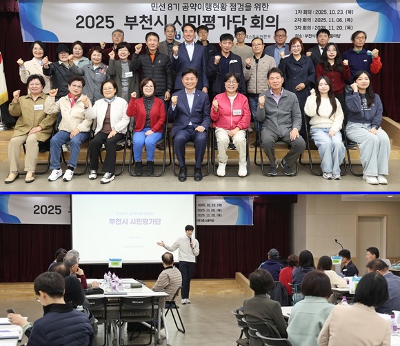 Á¶¿ëÀÍ ºÎõ½ÃÀåÀÌ Áö³­ 23ÀÏ ¡®¹Î¼±8±â °ø¾à ÀÌÇà »óȲ Á¡°ËÀ» À§ÇÑ 2025³â ½Ã¹ÎÆò°¡´Ü¡¯°ú ±â³äÃÔÀ» Çϰí ÀÖ´Ù. ¾Æ·¡´Â ½Ã¹ÎÆò°¡´Ü 1Â÷ ȸÀÇ ¸ð½À.(»çÁø= ºÎõ½Ã Á¦°ø)