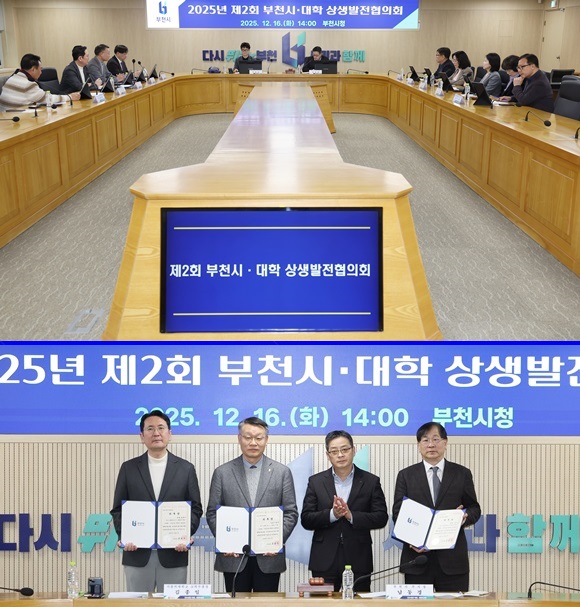 ºÎõ½Ã´Â Áö³­ 16ÀÏ ½Ãû âÀǽǿ¡¼­ °¡Å縯´ëÇб³, ºÎõ´ëÇб³, ¼­¿ï½ÅÇдëÇб³, À¯ÇÑ´ëÇб³ µî °ü³» 4°³ ´ëÇаú ºÎõ»ê¾÷ÁøÈï¿ø, ºÎõ»ó°øÈ¸ÀǼÒ, ºÎõ°­¼Ò±â¾÷ÇùÀÇȸ µî ÁÖ¿ä »êÇÐ ±â°ü °ü°èÀÚµéÀÌ Âü¼®ÇÑ °¡¿îµ¥ ¡®2025³â Á¦2ȸ ºÎõ½Ã‧´ëÇÐ »ó»ý¹ßÀüÇùÀÇȸ¡¯¸¦ °³ÃÖÇß´Ù.