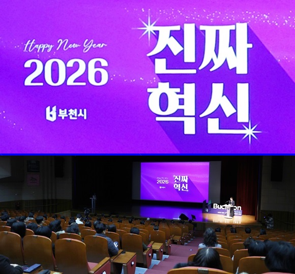 Á¶¿ëÀÍ ºÎõ½ÃÀåÀÌ 2ÀÏ ½Ãû ¾î¿ï¸¶´ç¿¡¼­ ¿­¸° 2026³â ½Ã¹«½Ä¿¡¼­ ¡®ÁøÂ¥ Çõ½Å¡¯À» È­µÎ·Î Á¦½ÃÇÏ¸ç ¹Î»ý¡¤¹Ì·¡¡¤°ø°£¡¤ÇàÁ¤ µî 4´ë Çõ½ÅºÐ¾ß ½ÃÁ¤°èȹÀ» ¹ßÇ¥Çϰí ÀÖ´Ù.(»çÁø= ºÎõ½Ã Á¦°ø)