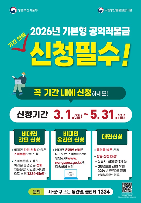 ºÎõ½Ã, ³ó¾÷ÀÎ ´ë»ó ¡®2026³â ±âº»Çü °øÀÍÁ÷ºÒ±Ý¡¯ 3¿ù 1ÀϺÎÅÍ ½Åû Á¢¼ö