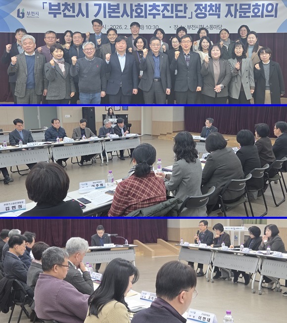 Áö³ 24ÀÏ ³²µ¿°æ ºÎ½ÃÀå ÁÖÀç·Î ¿¸° ¡®ºÎõ½Ã ±âº»»çȸÃßÁø´Ü Á¦1Â÷ Á¤Ã¥ÀÚ¹®È¸ÀÇ¡¯ Âü¼®ÀÚµéÀÌ ±â³äÃÔ¿µÀ» Çϰí ÀÖ´Ù. ¾Æ·¡´Â ÁÖ¿ä ¾È°ÇÀ» ³íÀÇÇÏ´Â ¸ð½À.(»çÁø= ºÎõ½Ã Á¦°ø)