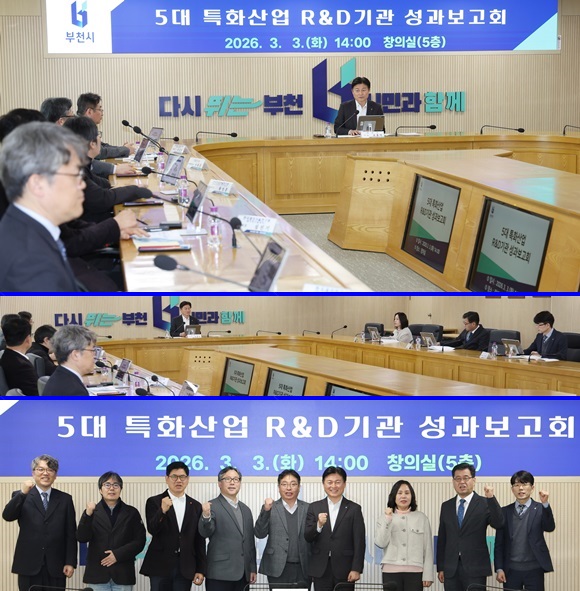 ºÎõ½Ã´Â Áö³­ 3ÀÏ ½Ãû âÀǽǿ¡¼­ ±ÝÇü¡¤Á¶¸í¡¤·Îº¿¡¤ÆÐŰ¡¡¤¼¼¶ó¹Í µî 5´ë Ưȭ»ê¾÷ ºÐ¾ß ¿¬±¸°³¹ß(R&D) ±â°ü ´ëÇ¥µéÀÌ Âü¼®ÇÑ °¡¿îµ¥ ¡®2026³â 5´ë Ưȭ»ê¾÷ R&D±â°ü ¼º°úº¸°íȸ¡¯¸¦ °³ÃÖÇß´Ù.