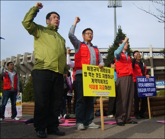 À̵éÀº ¡°°è¾àÁ÷Àº ¾ÈÀü¼ö´ç, ¸ñ¿åºñ, ½ÄºñÁ¶Â÷ Áö±ÞÇÏÁö ¾Ê°í ÀÖ´Ù¡±¸ç ¡°°ø´ÜÃøÀº ´Üü±³¼·¿¡ ÀÀÇØ ºñÁ¤±ÔÁ÷¿¡ ´ëÇÑ Â÷º°À» ½ÃÁ¤ÇÒ °Í¡±À» ¿ä±¸Çß´Ù.