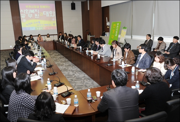 ¿À¼¼¿ø »çȸº¹Áö°úÀå »çȸ·Î ÁøÇàµÈ ÇöÀå´ëÈ´Â ¡âÁö¿ª»çȸ ³»¿¡¼ »çȸº¹Áö°ø¹«¿øÀÇ ¿ª·® °È ¡â»çȸº¹Áö ÁõÁø ¹× °³¼± ¹æ¾È ¡â±âŸ »çȸº¹ÁöÁ¤Ã¥ Àü¹Ý¿¡ °üÇÑ »çÇ× µî 3°¡Áö ¼ÒÁÖÁ¦¸¦ Áß½ÉÀ¸·Î ÁøÇàµÆ´Ù.