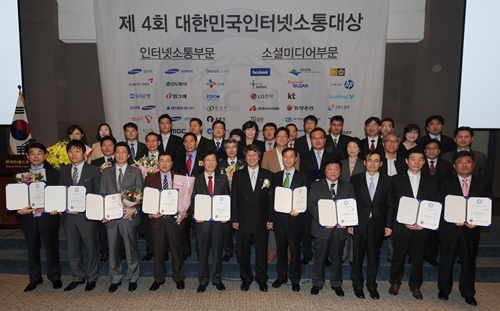¡â7ÀÏ ¿ÀÀü Çѱ¹ÇÁ·¹½º¼¾ÅÍ ÇÁ·¹½ºÅ¬·´¿¡¼­ ¿­¸° Çѱ¹ÀÎÅͳݼÒÅëÇùȸ(ICOA) ÁÖÃÖ ¡®Á¦4ȸ ´ëÇѹα¹ ÀÎÅÍ³Ý ¼ÒÅë ´ë»ó¡¯ ½Ã»ó½Ä¿¡¼­ ¼ö»ó ±â°ü °ü°èÀÚµéÀÌ ´Üü ±â³äÃÔ¿µÀ» Çϰí ÀÖ´Ù. <<»çÁø= ºÎõ½Ã È«º¸±âȹ°ü½Ç Á¦°ø>>