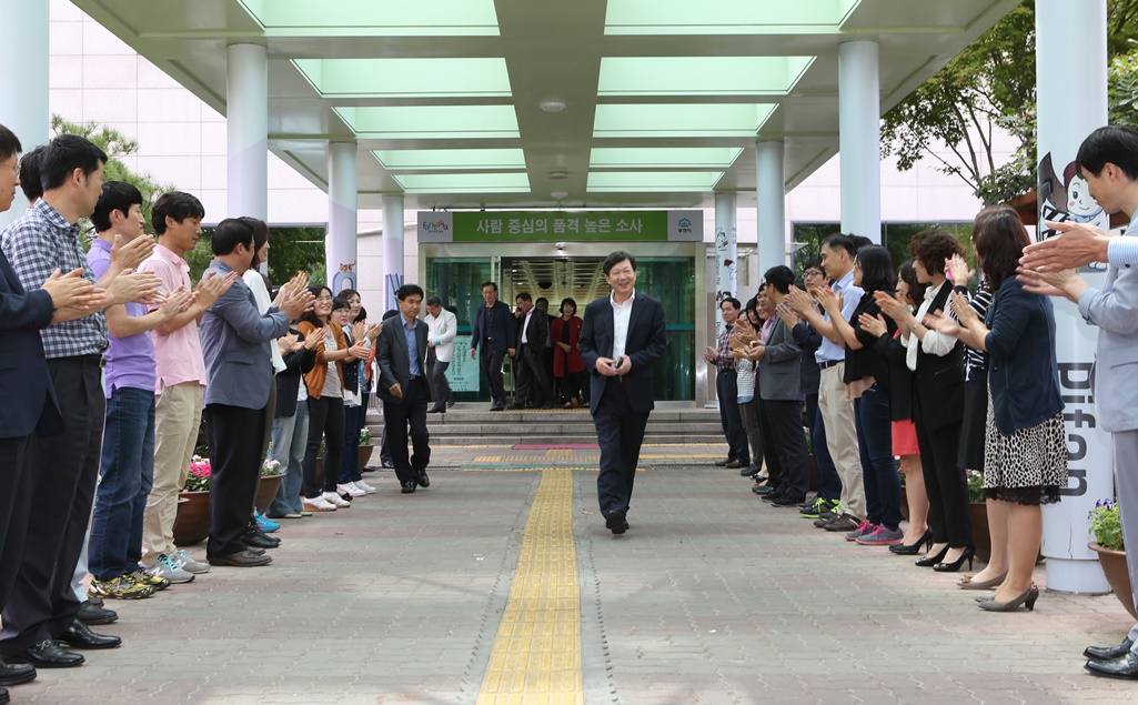 ±èÈ«¹è ±¸Ã»ÀåÀº ƯÈ÷ ¸í¿¹ÅðÀӽĵµ »ý·«ÇÏ°í °¢ ºÎ¼¸¦ ã¾Æ Á÷¿øµé°ú ÀÏÀÏÀÌ ¾Ç¼ö¸¦ ³ª´©´Â °ÍÀ¸·Î ´ë½ÅÇϰí, Á÷¿ø ³»ºÎÅë½Å¸ÁÀ» ÅëÇØ ¡°¸ðµç °øÁ÷ÀÚ´Â °øÁ÷»ýȰ¿¡ À־µ ¹ß·Î ¶Ù¸ç, ½Ã¹Î¿¡°Ô ºÀ»çÇϰí, ¼¶±â´Â ÀÚ¼¼·Î ÀÓÇØ¾ß Çϸç, °øÁ÷Àڷμ û·ÅÀÌ ÃÖ¿ì¼±ÀÌ µÅ¾ß ÇÑ´Ù¡±¸é¼ ¡°½Ã¹ÎÀ» À§ÇØ ¿µÈ¥ÀÌ ÀÖ´Â °øÁ÷ÀÚ°¡ µÇ±æ ¹Ù¶õ´Ù¡±°í ÈÄ¹è °øÁ÷Àڵ鿡°Ô ´çºÎÀÇ ¸»À» ÀüÇß´Ù.