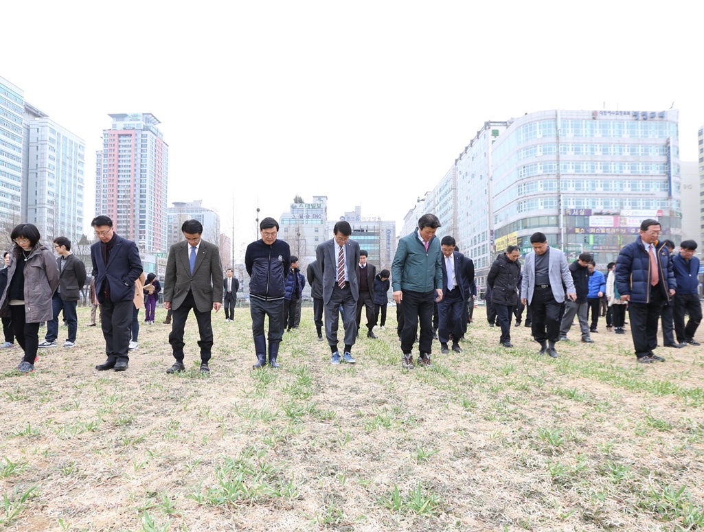 18ÀÏ ¿ÀÈÄ ºÎõ½Ã ¿ø¹Ì±¸ Áßµ¿ ¾ç¹¦Àå¿¡ Á¶¼ºµÈ ¡®º¸¸®¹ç »çÀձ桯¿¡¼ ±è¸¸¼ö ½ÃÀå(°¡¿îµ¥)À» ºñ·ÔÇÑ Á÷¿øµéÀÌ º¸¸®¹â±â¸¦ Çϰí ÀÖ´Ù. 2015.3.18 <<ºÎõ½Ã Á¦°ø>>