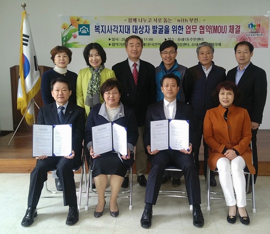 ºÎõ½Ã ¼Ò»ç±¸ ¼Û³»1µ¿ º¹ÁöÇùÀÇü(À§¿øÀå ±è¿µ±Ô)´Â Áö³ 9ÀÏ µ¿ Áֹμ¾ÅÍ È¸Àǽǿ¡¼ º¹Áö»ç°¢Áö´ë ´ë»óÀÚ ¹ß±¼À» À§ÇØ ³²ºÎõ¿ìü±¹(±¹Àå ±è³²½É), Çѱ¹Àü·Â°ø»ç ºÎõ°Ëħ¼¾ÅÍ(¼¾ÅÍÀå ÀÓ¿µ¼ö)¿Í ¾÷¹«Çù¾à(MOU)À» ü°áÇß´Ù.