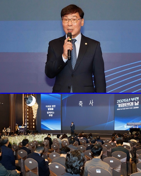 ±èº´Àü ºÎõ½ÃÀÇȸ ÀÇÀåÀº 17ÀÏ ¿ÀÀü ºÎõ ¼ÒdzÄÁº¥¼Ç¿¡¼­ ¿­¸° ¡®2025³â ºÎõ±â¾÷ÀÎÀÇ ³¯ ±â³ä½Ä¡¯¿¡¼­ Ãà»ç¸¦ Çϰí ÀÖ´Ù.(¼­Áø= ºÎõ½ÃÀÇȸ Á¦°ø)