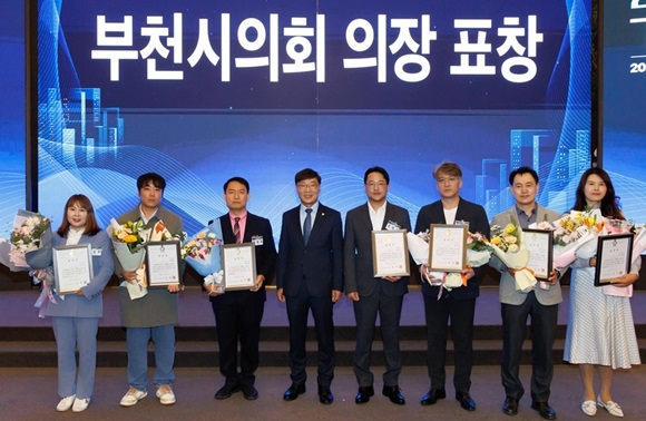 ±èº´Àü ºÎõ½ÃÀÇȸ ÀÇÀå(¿ÞÂÊ¿¡¼­ ³× ¹øÂ°)Àº 17ÀÏ ¿­¸° ¡®2025³â ºÎõ±â¾÷ÀÎÀÇ ³¯ ±â³ä½Ä¡¯¿¡¼­ Áö¿ª »ê¾÷ ¹ßÀü°ú °í¿ë âÃâ¿¡ ±â¿©ÇÑ ±â¾÷ÀÎ 10¸í¿¡°Ô ǥâÀåÀ» ¼ö¿©ÇÏ°í ±â³äÃÔ¿µÀ» Çϰí ÀÖ´Ù.(»çÁø= ºÎõ½ÃÀÇȸ Á¦°ø)