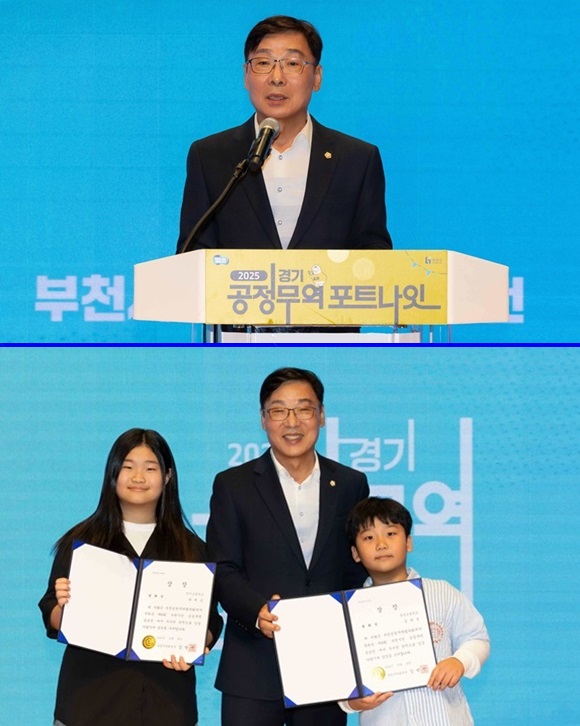 ±èº´Àü ºÎõ½ÃÀÇȸ ÀÇÀåÀÌ Áö³ 24ÀÏ ¿¸° ¡®2025 °øÁ¤¹«¿ª Æ÷Æ®³ªÀÕ¡¯ °³¸·½Ä¿¡¼ Ãà»ç¸¦ Çϰí ÀÖ´Ù. ¾Æ·¡´Â °øÁ¤¹«¿ª °ø¸ðÀü ¡®ÆòÈ»ó¡¯ ¼ö»óÀÚ 2¸í¿¡°Ô »óÀåÀ» ¼ö¿©ÇÏ°í ±â³äÃÔ¿µÀ» ÇÏ´Â ¸ð½À.(»çÁø= ºÎõ½ÃÀÇȸ Á¦°ø)