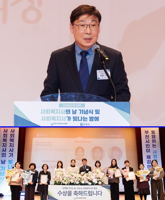 ±èº´Àü ºÎõ½ÃÀÇȸ ÀÇÀåÀº Áö³­ 3¿ù 31ÀÏ ¿ÀÈÄ 3½Ã ¼Ò»ç±¸Ã» ¼ÒÇâ°ü¿¡¼­ ¿­¸° ¡®Á¦20ȸ »çȸº¹Áö»çÀÇ ³¯ ±â³ä½Ä¡¯¿¡ Âü¼®ÇØ »çȸº¹Áö»çµéÀÇ ³ë°í¿¡ °¨»çÀÇ ¶æÀ» ÀüÇß´Ù.