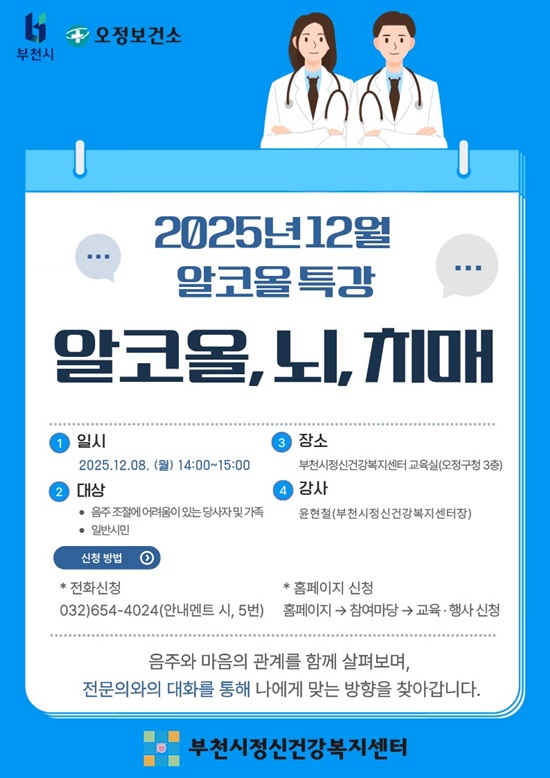 ºÎõ½ÃÁ¤½Å°Ç°­º¹Áö¼¾ÅÍ, 12¿ù 8ÀÏ ¡®¾ËÄÚ¿ÃÀÌ ³ö¿¡ ¹ÌÄ¡´Â ¿µÇ⡯ ÁÖÁ¦ Ư°­