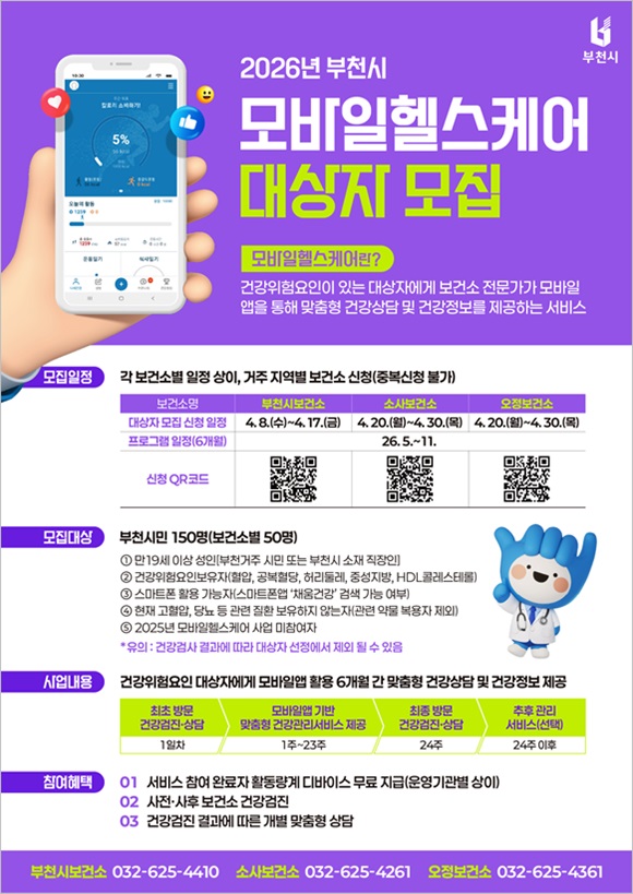 ºÎõ½Ã 3°³ º¸°Ç¼Ò, 2026³â ¡®¸ð¹ÙÀÏ ÇコÄɾ Âü¿©ÀÚ ¸ðÁý