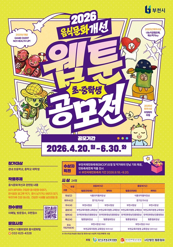 | ºÎõ½Ã, ¡®2026³â À½½Ä¹®È°³¼± ÃÊ¡¤ÁßÇлý À¥Å÷¡¤Ä³¸¯ÅÍ °ø¸ðÀü¡¯ 6¿ù 30ÀϱîÁö °³ÃÖ | |||