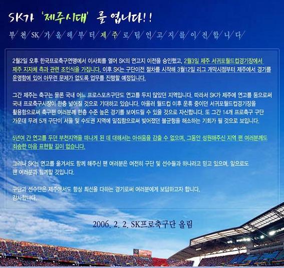 | ºÎõSKÇÁ·ÎÃ౸´Ü, ¿¬°íÁö ºÎõ¼ Á¦ÁÖµµ·Î ¿Å±ä´Ù |