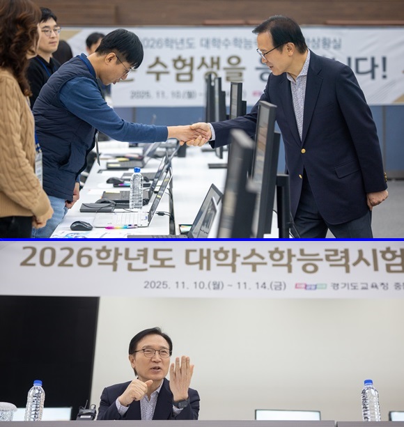 ÀÓÅÂÈñ °æ±âµµ±³À°°¨ÀÌ 11¿ù 13ÀÏ µµ±³À°Ã» ºÏºÎû»ç¿¡ ¼³Ä¡µÈ 2026Çг⵵ ´ëÇмöÇдɷ½ÃÇè Á¾ÇÕ»óȲ½ÇÀ» ¹æ¹®ÇØ ÁøÇà»óȲÀ» ¼³¸íµè°í °ü°èÀÚµéÀ» °Ý·ÁÇϰí ÀÖ´Ù.(»çÁø= °æ±âµµ Á¦°ø)