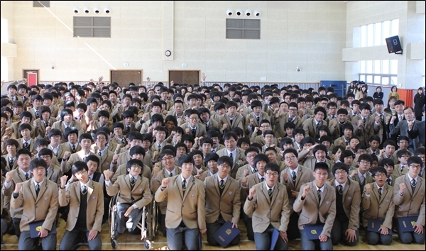 ƯÈ÷ ¼Û¼öÇö ±³ÀåÀº Çлýµé°ú ¸¶Âù°¡Áö·Î ¡®±³º¹¡¯À» ÀÔ°í ÀÔÇнĿ¡ Âü¼®ÇØ ´«±æÀ» ²ø¾ú´Âµ¥, 2009³â 1ȸ ÀÔÇнİú Áö³ÇØ 2ȸ ÀÔÇнĿ¡¼µµ ¡®±³º¹¡¯À» ÀÔÀº °ÍÀ¸·Î ¾Ë·ÁÁ® 3³â° ÀÔÇнĿ¡¼ ¡®±³º¹¡¯ Â÷¸²À¸·Î µîÀå. ÀÔÇнĿ¡¼´Â 25¸íÀÇ Çлý¿¡°Ô 30¸¸¿ø¾¿ ÃÑ 750¸¸¿øÀÇ ÀåÇÐÁõ¼¸¦ ¼ö¿©Çß°í, »õ·Î ÀüÀÔÇØ¿À½Å 36¸íÀÇ ¼±»ý´Ôµé²² ÇлýÀÚġȸ °£ºÎµéÀÌ Àå¹Ì²É ÇѼÛÀ̾¿À» ¼±¹°. ¶Ç Àüü ±³¿ø 60¸í°ú 345¸íÀÇ ÀÔÇлýµéÀÌ Çб޺°·Î ´ãÀÓ±³»ç¿Í ÇÔ²² °´çÀÇ ´Ü»óÀ¸·Î ¿Ã¶ó¿Í ¸ðµç ±³Á÷¿øµé°ú ÀÏÀÏÀÌ ¾Ç¼ö¸¦ ³ª´³°í, ÀÔÇнÄÀÌ ³¡³ µÚ¿¡´Â Àüü Çлý°ú ±³Á÷¿øµéÀÌ µÕ±×·¸°Ô ¿øÀ» ±×·Á ÆÄÀÌÆÃÀ» ¿ÜÄ¡¸é¼ ÀÔÇÐ½Ä ±â³ä ÀÎÁõ¼¦À» Âï´Â À̺¥Æ®·Î ¸¶·Ã. |