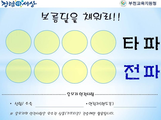 ºÎõ±³À°Áö¿øÃ»Àº ¶Ç 1Ãþ Çö°ü¿¡¼ Àüü Á÷¿ø°ú ¹Î¿øÀεéÀ» ´ë»óÀ¸·Î ¡®º¸¸§´ÞÀ» ä¿ö¶ó¡¯¶ó´Â ºÎÁ¦·Î ¡®Ã»·Å ¹®±¸¡¯ ÀÀ¸ðÀüÀ» ½Ç½ÃÇØ ÀÏ»ó»ýȰ ȤÀº ±³À°ÇöÀå¿¡¼ ŸÆÄÇÒ °Í°ú ³Î¸® ÀüÆÄÇØ¾ß ÇÒ °ÍÀÌ ¹«¾ùÀÎÁö¿¡ ´ëÇØ »ý°¢Çغ¸°í û·Å ÀÀ¸ðÁö º¸¸§´Þ ¾È¿¡ Âü½ÅÇÑ Ã»·Å ¹®±¸¸¦ ä¿ìµµ·Ï Çß´Ù.