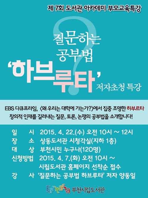 ºÎõ½Ã¸³ »óµ¿µµ¼°üÀº ¿À´Â 22ÀÏ ¿ÀÀü 10½ÃºÎÅÍ ½Ãû°¢½Ç¿¡¼ ¡®Áú¹®ÇÏ´Â °øºÎ¹ý ÇϺê·çŸ¡¯ÀÇ ¾çµ¿ÀÏ ÀúÀÚ¸¦ ÃÊÃ»ÇØ Á¦7ȸ µµ¼°ü ¾ÆÄ«µ¥¹Ì¸¦ °³ÃÖÇÑ´Ù.