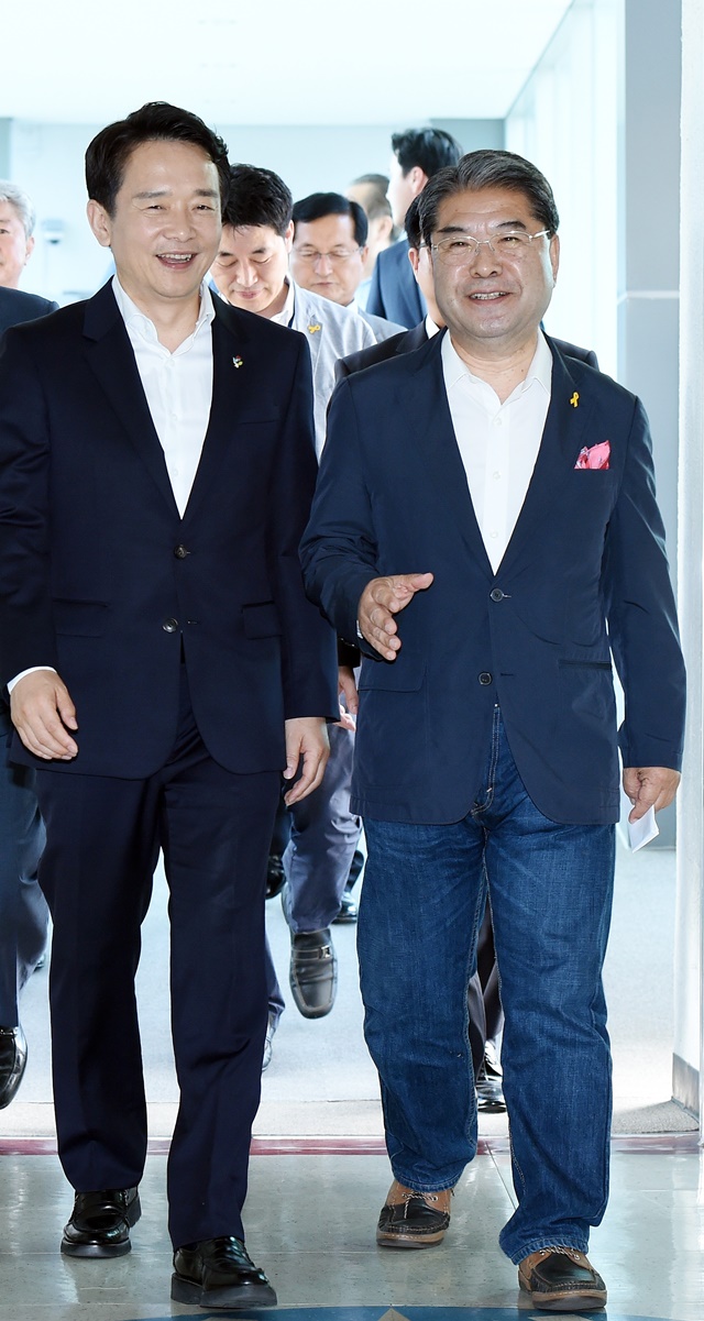 ³²°æÇÊ °æ±âµµÁö»ç¿Í ÀÌÀçÁ¤ °æ±âµµ±³À°°¨ÀÌ 30ÀÏ ¿ÀÀü °æ±âµµÃ»¿¡¼ ÃëÀÓ 1ÁÖ³âÀ» ¸Â¾Æ °øµ¿±âÀÚȸ°ßÀ» °®°í ¡°µµ¹ÎÀ» À§ÇØ ÇÑ ¸öó·³ Á¤Ã¥À» ÃßÁøÇϰڴ١±¸ç »ó»ý°ú Çù·ÂÀ» °Á¶Çϸç 5°³Ç×ÀÇ Çù·Â»çÇ×À» ¹ßÇ¥Çß´Ù.