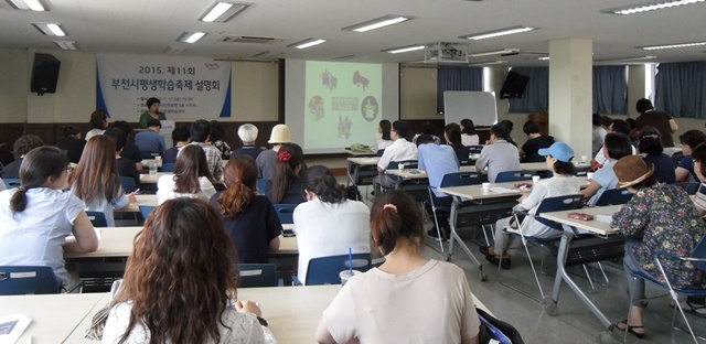 ½Ã Æò»ý±³À°°ú´Â ÀÌ¿¡ ¾Õ¼ Áö³ 17ÀÏ ºÎõ½Ã¹ÎÇнÀ¿ø ´©¸®ÅÍ¿¡¼ 80¿©¸íÀÌ Âü¼®ÇÑ °¡¿îµ¥ ¡®Á¦11ȸ ºÎõ½ÃÆò»ýÇнÀÃàÁ¦ ¸¶À»ÃàÁ¦ÇѸ¶´ç ÇÁ·Î±×·¥ °ø¸ð ¼³¸íȸ'¸¦ °®°í ÃàÁ¦ ÃëÁö ¹× ÀÏÁ¤, Áö¿ø ¹æ½Ä, ½Åû¼ ÀÛ¼º, ½É»ç¡¤¼±Á¤ ±âÁØ µîÀ» ¼³¸íÇß´Ù.