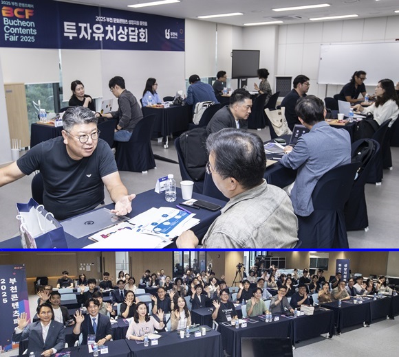 24ÀÏ ¿¸° ¡®2025 ºÎõ ÄÜÅÙÃ÷Æä¾î¡¯ÀÇ ÅõÀÚ¤ýºñÁî´Ï½º »ó´ãȸ¿¡´Â ÃÑ 53°³ ±â¾÷°ú ±â°üÀÌ ÃÑ 60¿©È¸ÀÇ 1:1 »ó´ãÀ» ÁøÇàÇß´Ù. ¾Æ·¡´Â ¡®2025 ºÎõ ÄÜÅÙÃ÷Æä¾î¡¯¿¡ Âü¿© ±â¾÷°ú ÅõÀڻ硤À¯°ü±â°ü °ü°èÀÚµéÀÌ ±â³äÃÔ¿µÀ» Çϰí ÀÖ´Ù.(»çÁø= ºÎõ½Ã Á¦°ø)