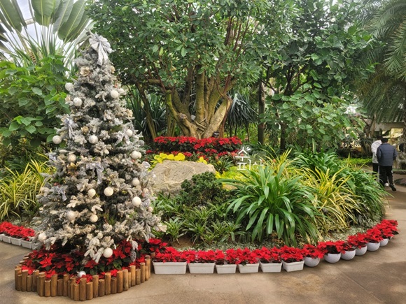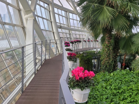 Àü½Ã °ø°£¿¡´Â Æ÷Àμ¼Æ¼¾Æ, ½ÃŬ¶ó¸à µî °Ü¿ïÀ» »ó¡ÇÏ´Â ½Ä¹°µéÀÌ ¹èÄ¡µÆÀ¸¸ç, ÀÔ±¸¿¡´Â Æ®¸® Àå½ÄÀÌ ¼³Ä¡µÅ °ü¶÷ µ¿¼±À» µû¶ó ½Ä¹°À» °¨»óÇÒ ¼ö ÀÖµµ·Ï ±¸¼ºÇß´Ù.