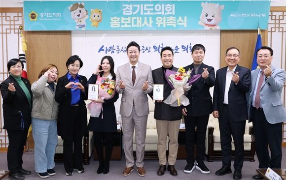 ±èÁø°æ °æ±âµµÀÇȸ ÀÇÀåÀÌ È«º¸´ë»ç·Î À§ÃËµÈ °¡¼ö Ű´Ï(¿ÞÂÊ), °³±×¸Ç °â ¹æ¼ÛÀÎ ÀåÀ翵(¿À¸¥ÂÊ)°ú ±â³äÃÔ¿µÀ» Çϰí ÀÖ´Ù.(»çÁø= °æ±âµµÀÇȸ Á¦°ø)