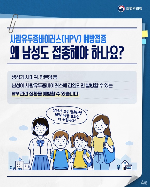 À̹ø ´ë»ó È®´ë´Â ³²¾ÆÀÇ ¿¹¹æÁ¢Á¾ Âü¿©¸¦ ³ô¿© °¨¿° È®»êÀ» ÁÙÀ̰í, ¼ºº°¿¡ »ó°ü¾øÀÌ HPV °ü·Ã ÁúȯÀ» ¿¹¹æÇÏ·Á´Â Á¶Ä¡´Ù.