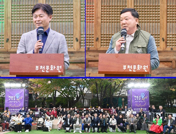 11¿ù 1ÀÏ ¿ÀÈÄ 4»ç ºÎõÇÑ¿ÁüÇ踶À»¿¡¼­ ¿­¸° ¡®ÀüÅëäźÎõ2025¡¯ ÃàÁ¦ °³¸·½Ä¿¡¼­ Á¶¿ëÀÍ ºÎõ½ÃÀå(¿ÏÂÊ)ÀÌ Ãà»ç¸¦ Çϰí, ±Ç¼øÈ£ ºÎõ¹®È­¿øÀå(¿À¸¥ÂÊ)ÀÌ °³È¸»ç¸¦ Çϰí ÀÖ´Ù. ¾Æ·¡´Â Âü¼® ³»ºóµéÀÌ ±â³äÃÔ¿µÀ» ÇÏ´Â ¸ð½À.(»çÁø= ºÎõ¹®È­¿ø Á¦°ø)