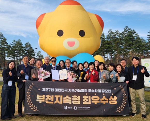 ºÎõ½ÃÁö¼Ó°¡´É¹ßÀüÇùÀÇȸ(ºÎõ½ÃÁö¼ÓÇù)°¡ Áö³­ 5ÀÏ È­¼º½Ã Á¤Á¶È¿°ø¿ø¿¡¼­ ¿­¸° ¡®2025³â ´ëÇѹα¹ Áö¼Ó°¡´É¹ßÀü´ëȸ¡¯¿¡¼­ ¡®Á¦27ȸ ´ëÇѹα¹ Áö¼Ó°¡´É¹ßÀü °ø¸ðÀü¡¯ ÃÖ¿ì¼ö»óÀÎ ±âÈÄ¿¡³ÊÁöȯ°æºÎ Àå°ü»óÀ» ¼ö»óÇß´Ù.