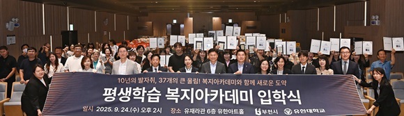 ºÎõ½Ã-À¯ÇÑ´ëÇб³ Æò»ýÇнÀ º¹Áö¾ÆÄ«µ¥¹Ì ÀÔÇÐ½Ä Âü¼®ÀÚµéÀÌ ±â³äÃÔ¿µÀ» Çϰí ÀÖ´Ù.